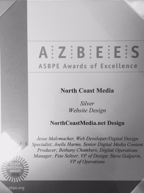 - North Coast Media, Silver, Website Design, “stage.northcoastmedia.net,” Jesse Malcmacher, Joelle Harms, Bethany Chambers, Pete Seltzer, Steve Galperin