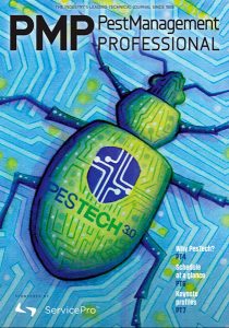 PMP_PesTech_419x600-210x300Design, Front Cover-Illustration, Silver Medalist, “PestTech 3.0” (December 2015), Leo Michael, Illustrator; Tracie Martinez, Marty Whitford and Heather Gooch